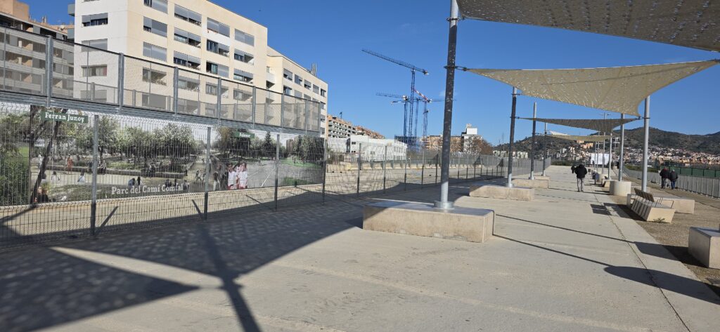 Els equips del Districte de Sant Andreu han instal·lat una zona d’ombres a l’estació de rodalies amb l’objectiu de millorar l’impacte climàtic en les zones d’estada.